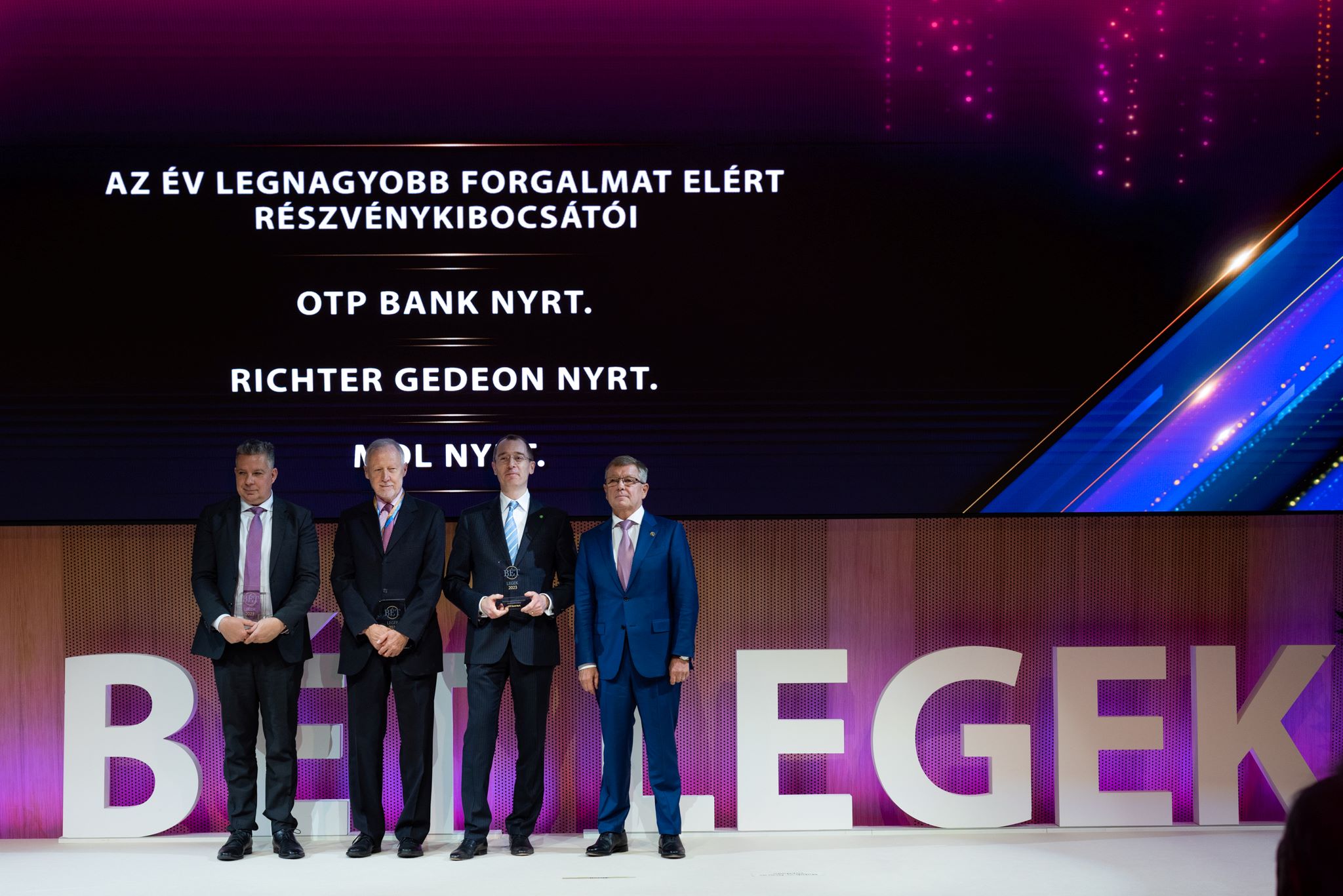 "The year 2023 was an outstanding success for the Budapest Stock Exchange: the BUX index rose 38 percent, equity market capitalisation reached HUF 15,000 billion, 7 new equity issuers entered the market and a total of HUF 1,560 billion of bonds were raised. We also celebrated all these successes by rewarding the most outstanding market players. We believe that a strong capital market is necessary for the sustainable competitiveness of the Hungarian economy, and that we can only achieve this by working together in partnership."