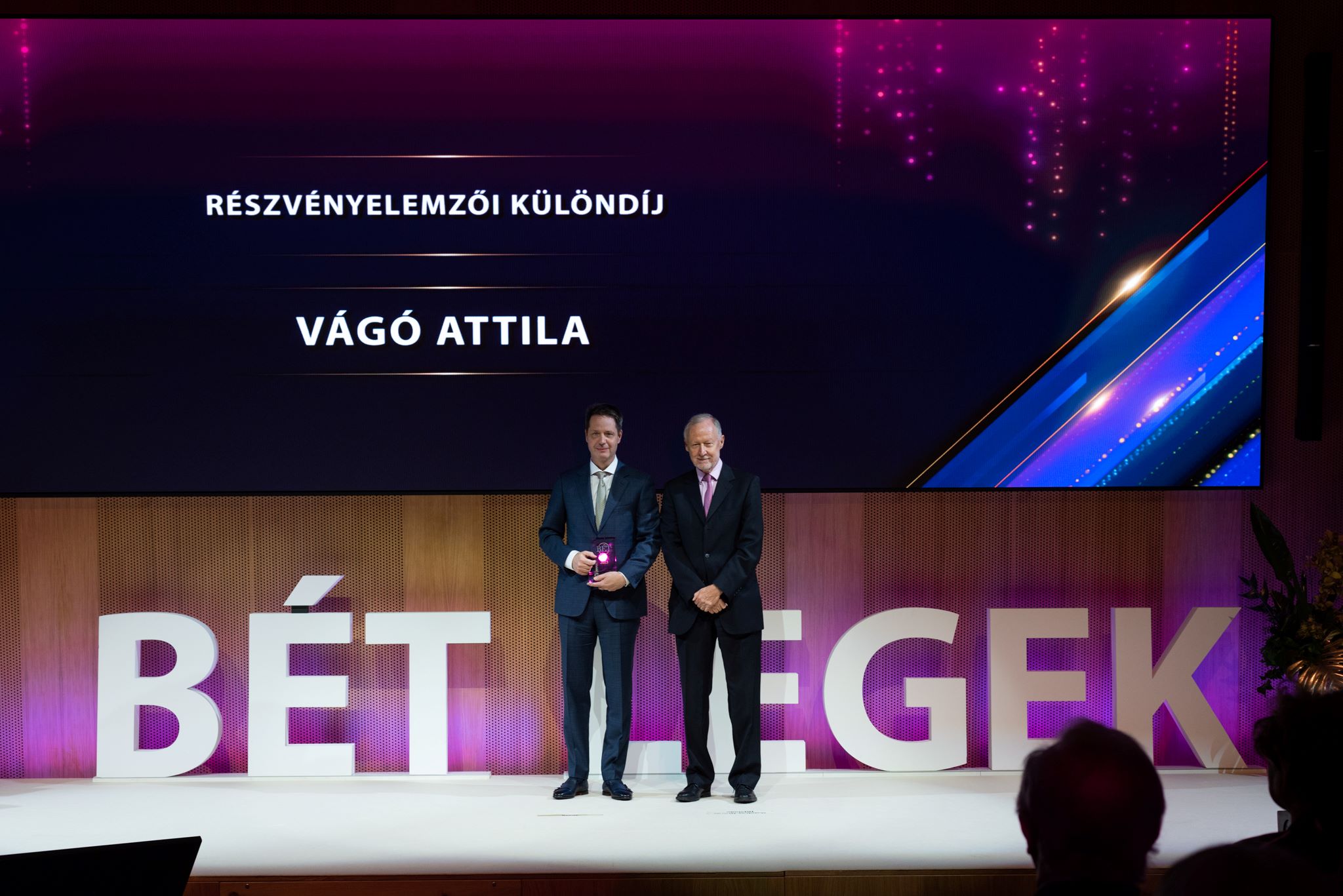 The awards for social responsibility, which are also highly prestigious, were also presented to Magyar Telekom Nyrt. for the Responsibility, Sustainability and Corporate Governance Award and the Investor Awareness Award to the Pénzmesterek / ÖPOSZ for the dissemination of investor awareness.