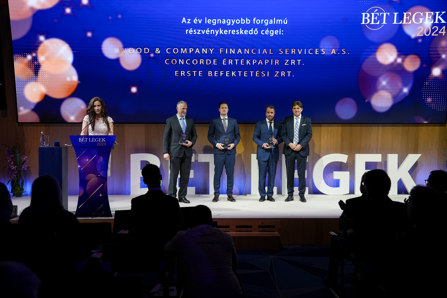 WOOD & Company came first in the ranking of the top-turnover stockbrokers, followed by Concorde Értékpapír Zrt. in second place and Erste Befektetési Zrt. in third place. Concorde Értékpapír Zrt. also received the Analyst of the Year Award in recognition of its work in market analysis and investor education.