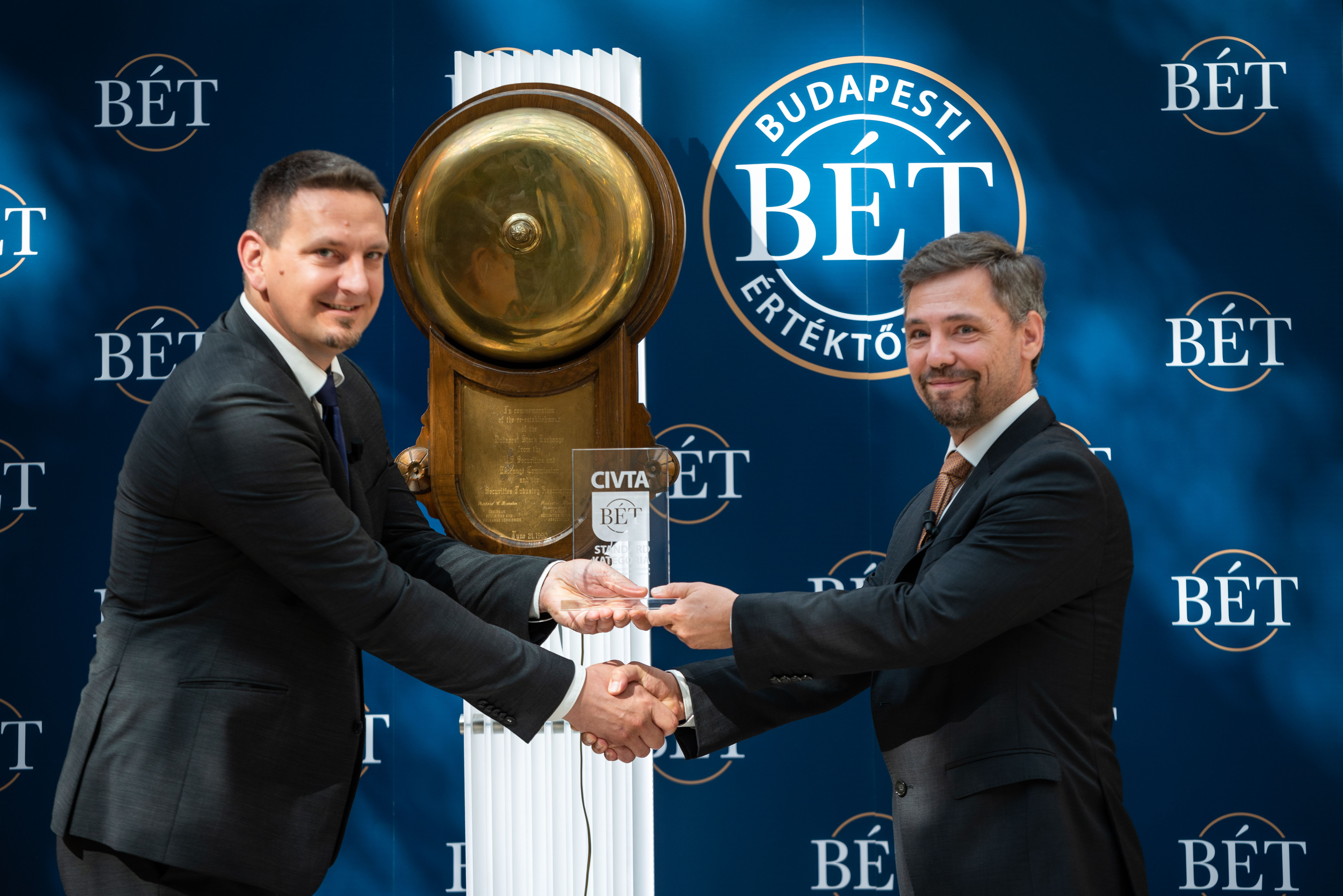 Újabb társasággal bővült az immár 21 kibocsátót számláló Standard kategória: a Civita Group nyilvános piacra lépését kereskedésindító csengetés jelezte a Budapesti Értéktőzsdén, amelyen Vaszkó Gábor, a Civita Group igazgatóságának elnöke, valamint Nagy Péter Gábor, a BÉT igazgatója is részt vett.