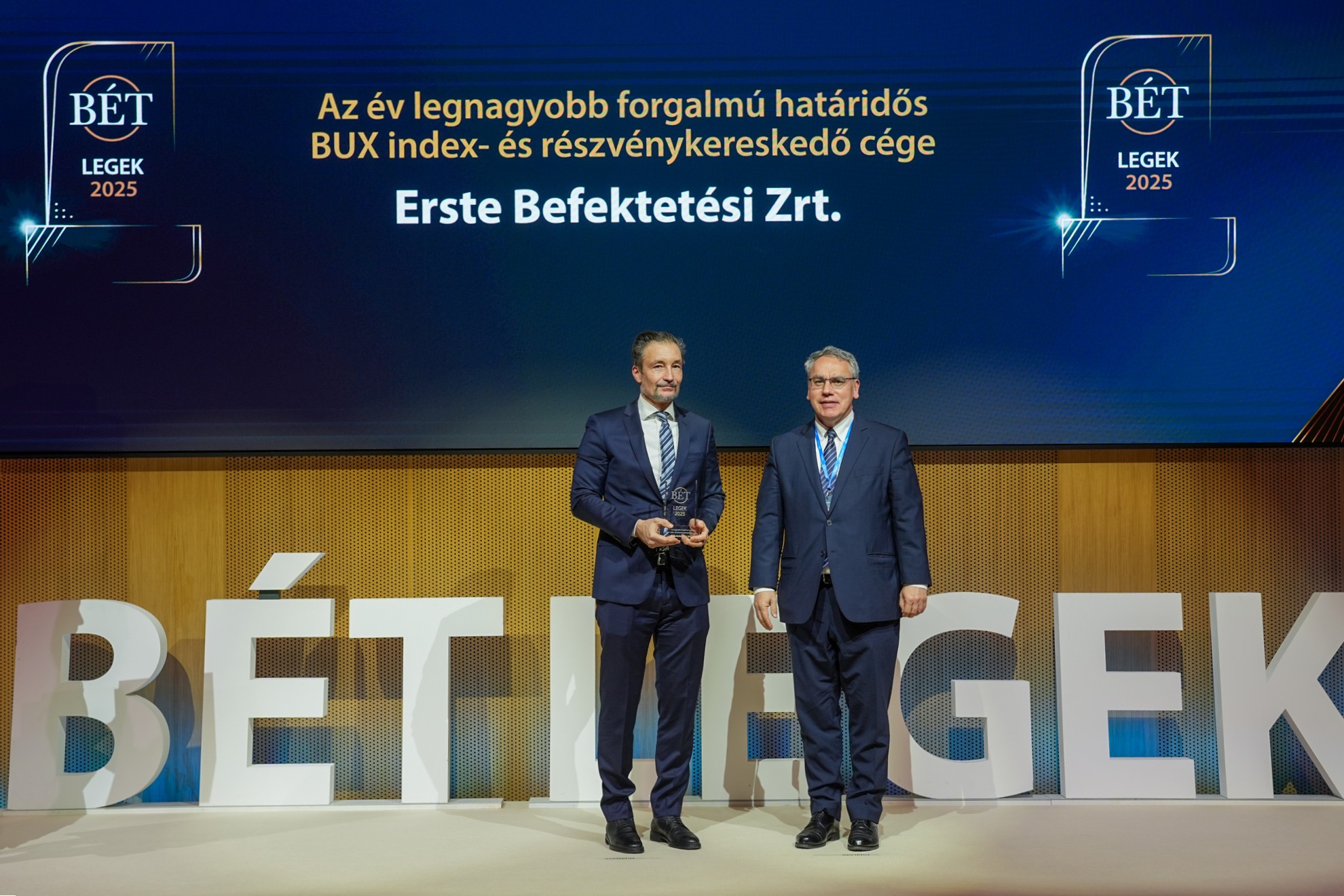 A befektetési szolgáltatók között a legnagyobb forgalmú részvénykereskedőnek járó elismerést immár többedik alkalommal a WOOD & Company szerezte meg, a brókercég a 2025-ös évben összesen 2371 milliárd forint értékben kötött ügyleteket. A határidős BUX index- és részvénykereskedelemben az Erste Befektetési Zrt., a határidős devizapiacon a Raiffeisen Bank érte el a legnagyobb forgalmat, „Az év elemző műhelye” díjat pedig a Concorde Értékpapír kapta.