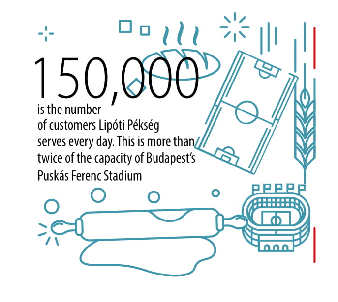 “A good entrepreneur does not have problems to face but tasks to solve”, says Péter Tóth. When he could not come to an agreement with the owner of a shop in a highly-frequented spot in Győr, instead of giving up, he offered them a deal they couldn’t refuse: a new franchise construction in which the owner runs the shop and Lipóti Bakery delivers the goods for a certain margin every day. This form of cooperation proved to work for the shop owner as well, and this success story became instantly popular. As potential franchise partners were soon beating a path to their door, they decided to go on expanding their franchise network and focus only on production. In one year, they opened 25 bakeries in the region, each one situated about 70 to 80 km from the others, meaning that they had a ribbon-cutting ceremony every other week. They could keep up this pace later too, and now there are 250 Lipóti bakeries all over the country.
