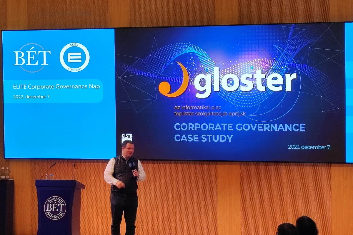 Egy újabb szünet után esettanulmánnyal folytatódott a szakmai délután, amelyet a Gloster Infokommunikációs Nyrt. részéről Szekeres Viktor alapító, és Oszlánszki Péter HR- és szervezetfejlesztési vezető prezentált.