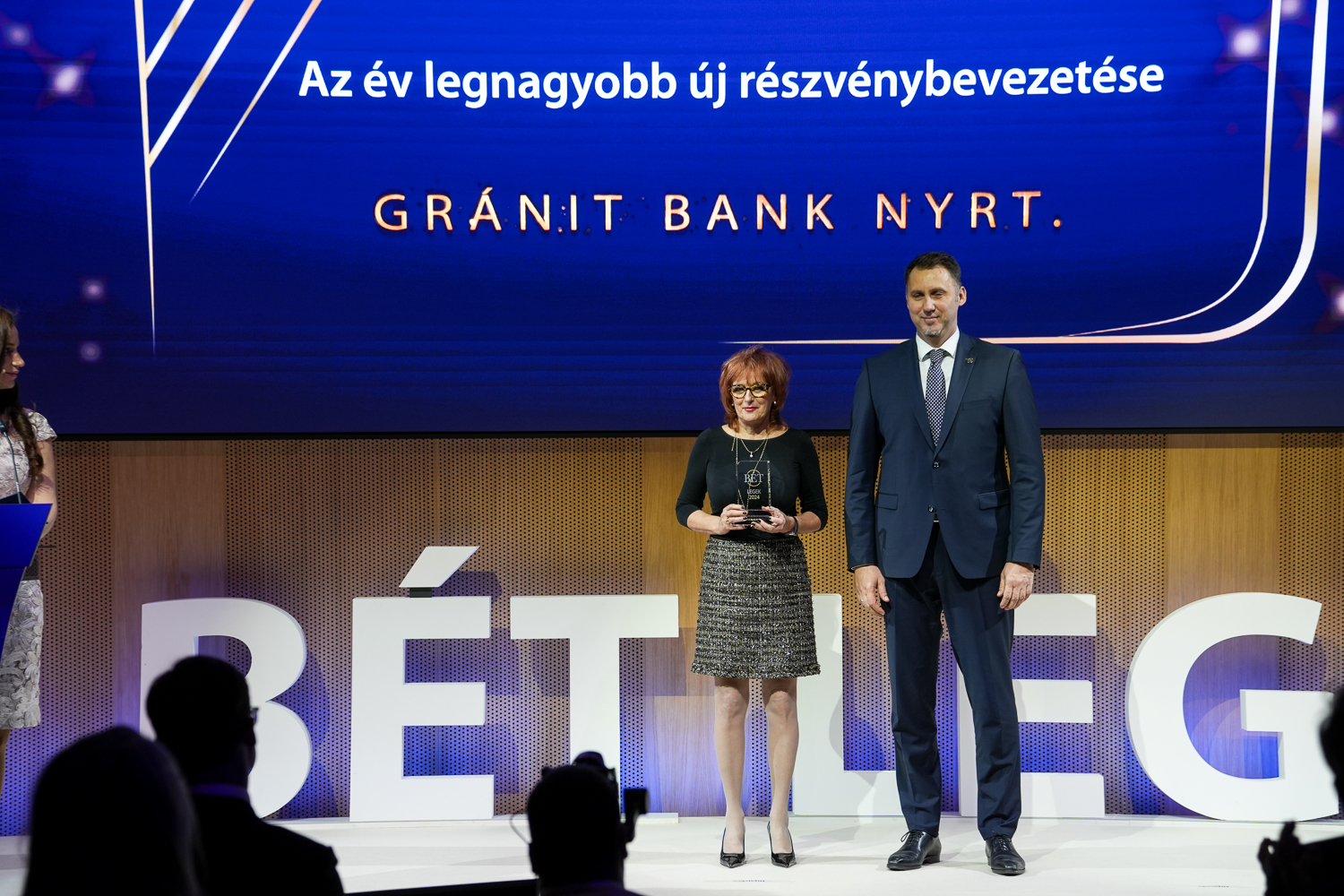 Az Év legnagyobb új részvénybevezetése címet a Gránit Bank Nyrt. érdemelte ki, amely 2024. december 23-án jelent meg a tőzsde Standard kategóriájában.