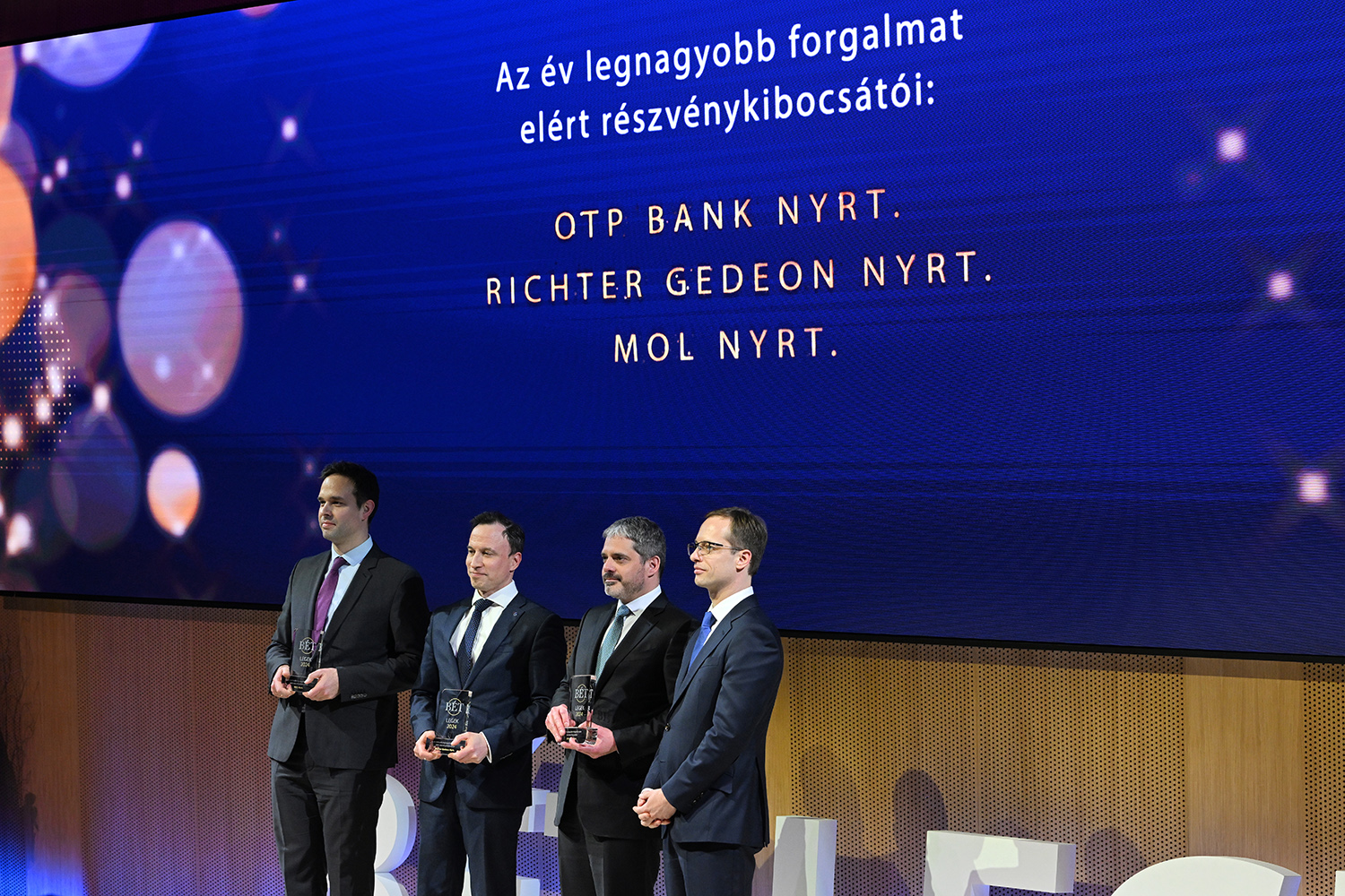 A 2024-ben legnagyobb forgalmat elért részvénykibocsátói között az első helyezést az OTP Bank Nyrt. szerezte meg, míg a második helyen a Richter Gedeon Nyrt., a harmadik helyen pedig a MOL Nyrt. végzett. A hitelintézet emellett elnyerte a Kibocsátói transzparencia díjat is, elismerve a piaci átláthatóság és kommunikáció terén végzett kiemelkedő munkáját, illetve a bank újonnan megjelentetett ETF terméke is elismerésben részesült. A Richter nem csak a második legnagyobb forgalmat elért részvénykibocsátó lett, hanem elnyerte a Felelősségvállalás, fenntarthatóság, felelős vállalatirányítási díjat is.